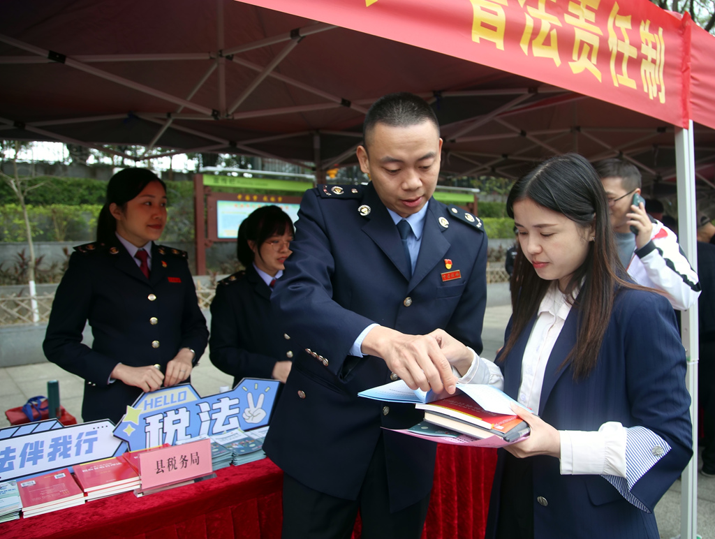 12月4日,在第十个国家宪法日,五华县税务局组织“嘉应税骑·长乐e税”移动宣传服务团队走进五华县“12·4”国家宪法日集中宣传活动现场,向过往群众发放宪法知识宣传手册、税收法律单行本、税费优惠政策汇编、城乡居民医保缴费指南等资料,就宪法和涉税费政策开展普法宣传,解答群众涉税疑难,引导纳税人缴费人了解学习宪法和税收法律知识。