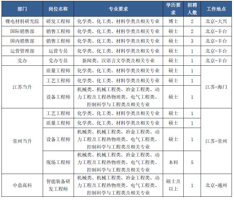 北京当升材料科技股份有限公司校园招聘