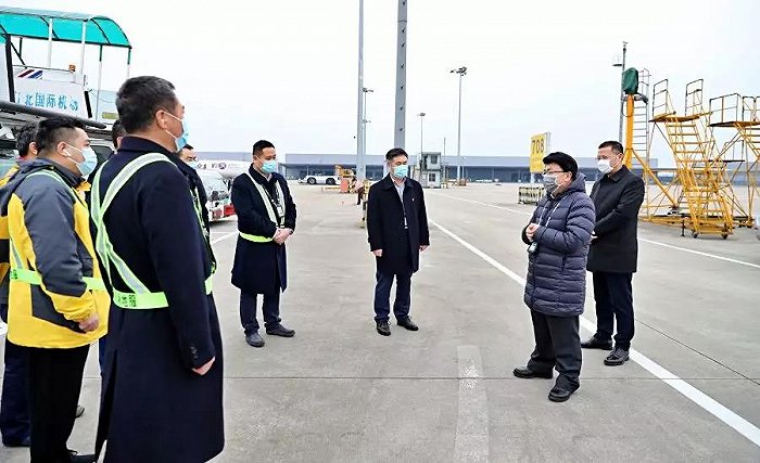 2月5日下午,重庆机场集团公司党委书记、董事长谭平川前往江北国际机场专用货机坪、国际航空货运站,检查督导应急防疫物资运输保障工作。谭平川强调,要提高政治站位,加强沟通协调,抓实抓细包机航班保障、货物快速交付等环节工作,确保应急物资航班保障快速、有效,应急物资交付及时、顺畅。