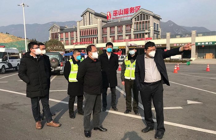 1月31日,滕英明驱车一千多公里,先后深入渝宜路巫山服务区、万利路长滩收费站、开开路开州服务区等疫情防控点,督促检查疫情防控工作。每到一处,他都要跟奋战在抗疫一线的党员干部和工作人员深入交流,详细了解一线防控工作开展情况和存在的具体问题,勉励、鼓励基层党组织和党员干部发挥战斗堡垒和先锋模范作用,结合各防控点实际提出明确工作要求。
