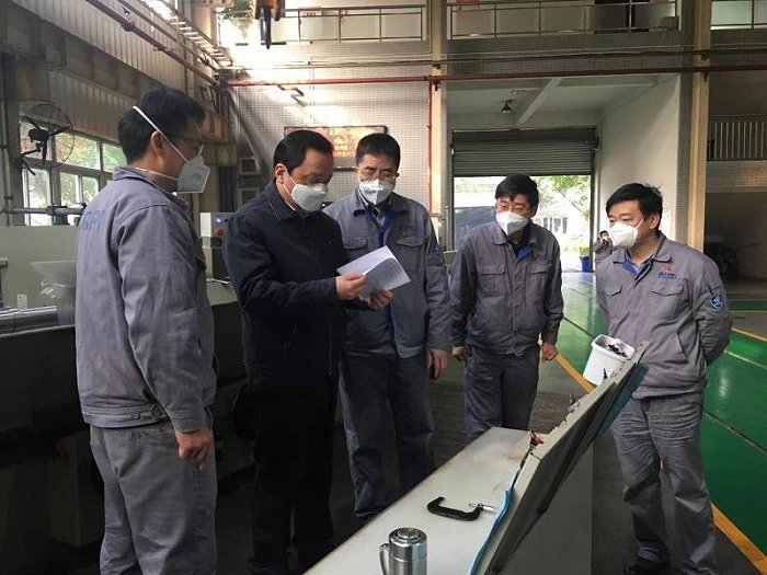 近日,重庆轻纺集团党委书记、董事长谢英明到江厦公司检查疫情防控工作和复工复产准备情况。