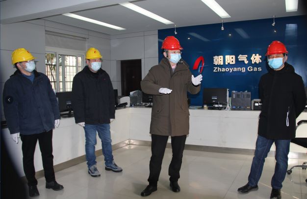 在朝阳公司建桥制气基地,刘大卫先后深入建桥制气基地综合平台、一站式客服厅、制氧主控室、医用氧平台检查指导疫情防控工作,现场了解管控点的疫情防控运行状况,嘱咐大家一定要全面落实疫情防控要求,确保工作正常进行。