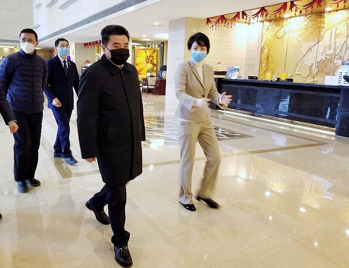随后,魏福生前往集团所属企业重庆维景国际大酒店督导工作。维景酒店因行业属性原因正在营业,也是集团本次疫情防控的重点防控单位。魏福生详细了解酒店落实疫情防控具体措施情况,充分肯定了酒店党员领导干部主动履职坚守岗位以及在春节期间的疫情防控工作成效。