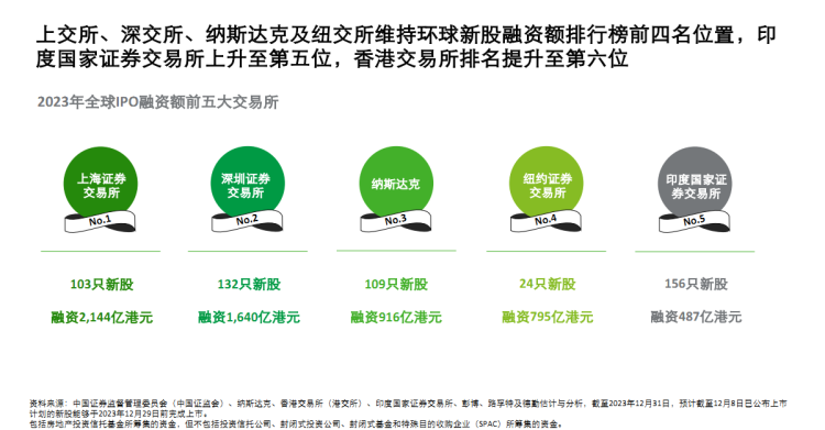 德勤数据显示,截至2023年12月8日,假设已公布的上市项目能够于今年年终前完成,由于上海和深圳的证券交易所在2023年前三季度完成全球十大新股中的4只新股,预计这两个证券交易所在2023年将会以融资金额领导全球新股市场。