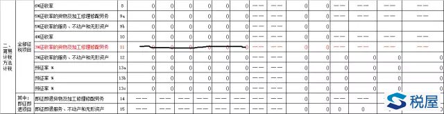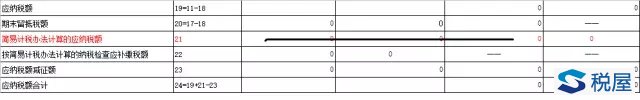 《税屋》提醒您:被遮挡部分第14行为“——”,第15行为0
