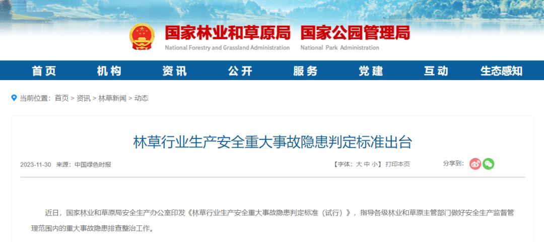 《林草行业生产安全重大事故隐患判定标准(试行)》