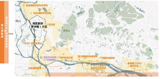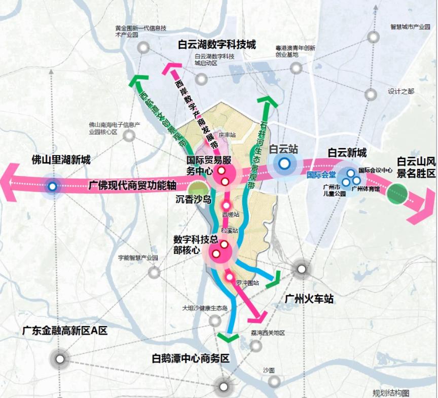 北承白云湖数字科技城,南接白鹅潭商务区