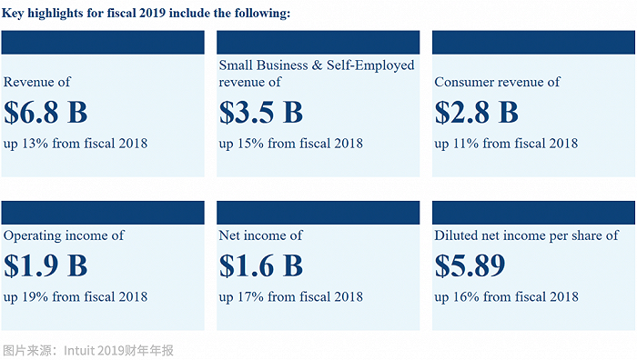2019财年,Intuit营收68亿美金,全球雇员超过9400名。