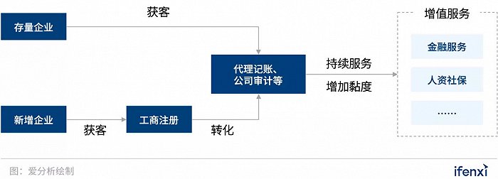 此类智能财税厂商通过线下门店销售和线上电销两种方式不断获取客户,通过持续服务更多客户,提高增值服务的转换化率,增加客户黏度。
