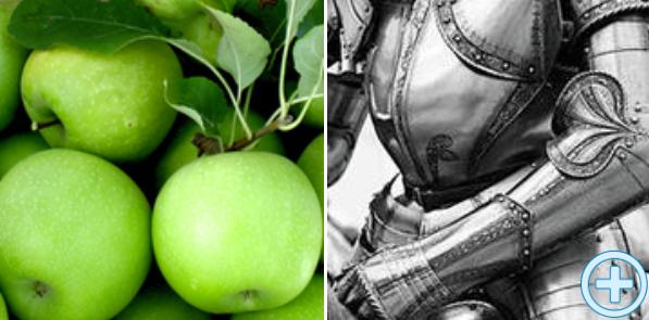 有人用一张普普通通的苹果,再加上一幅完全不搭调的盔甲图片。