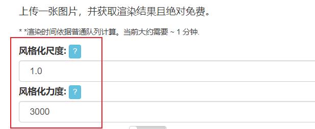 上传好了以后,可以自己设置一些渲染参数:风格化尺度、风格化力度。简单来说,就是这两个值越大,「滤镜图片」的风格就会越明显。