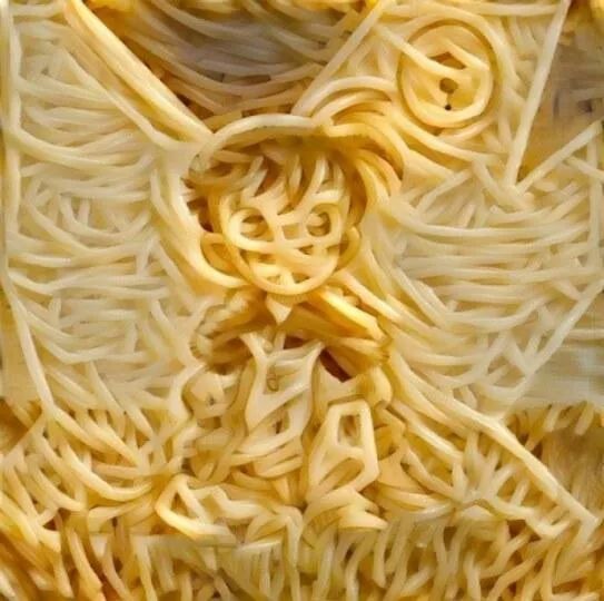 但,世超往下面一翻,发现这压根不是意大利面,而是通过一个艺术图像置换网站 Ostagram,合成出来的效果。