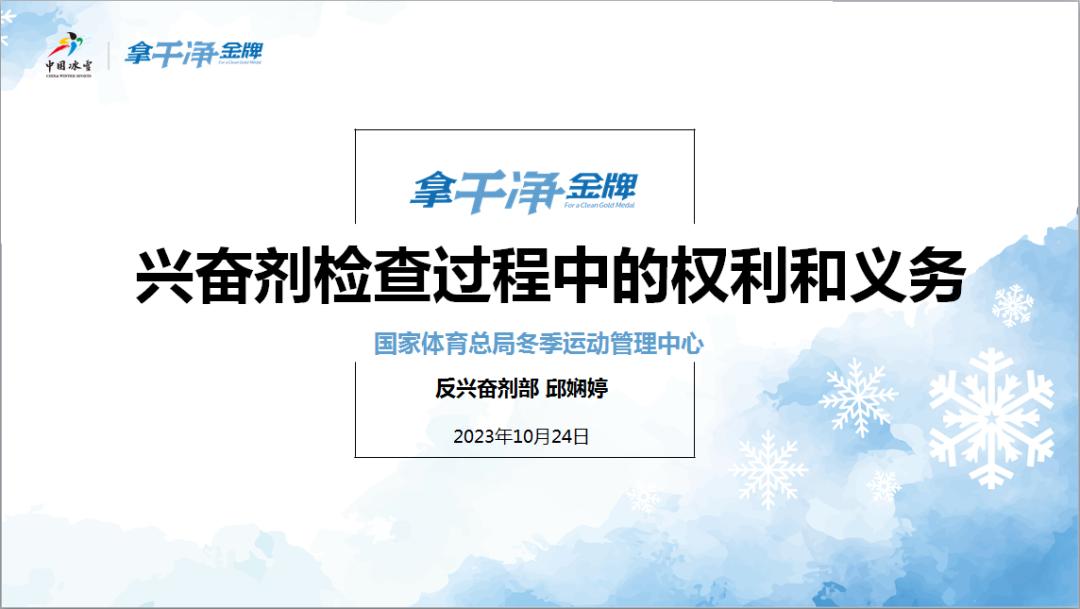此次培训是冬运中心针对冰雪项目反兴奋剂行业治理和十四冬反兴奋剂工作举办系列培训的第一讲,得到了全国冰雪运动管理单位和从业人员的大力支持,后续冬运中心还将推出运动员行踪管理、反兴奋剂法律法规、国家队反兴奋剂管理工作经验分享等课程。
