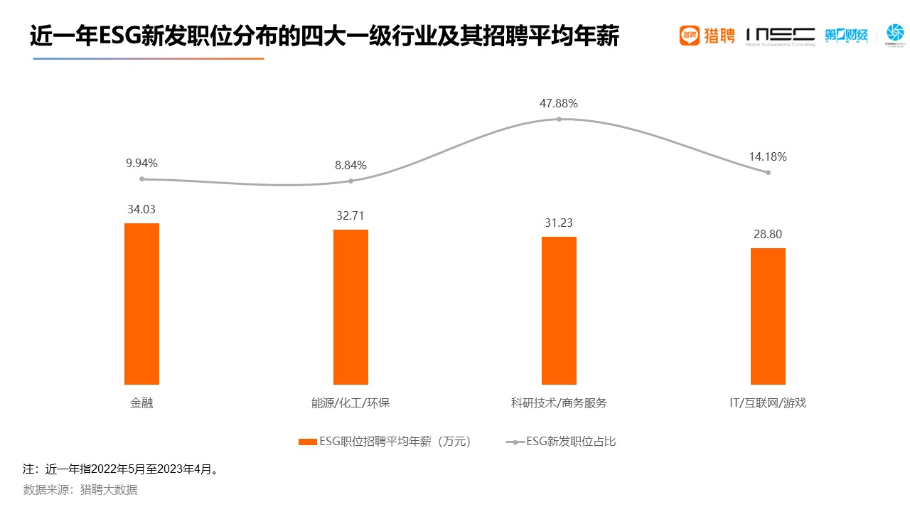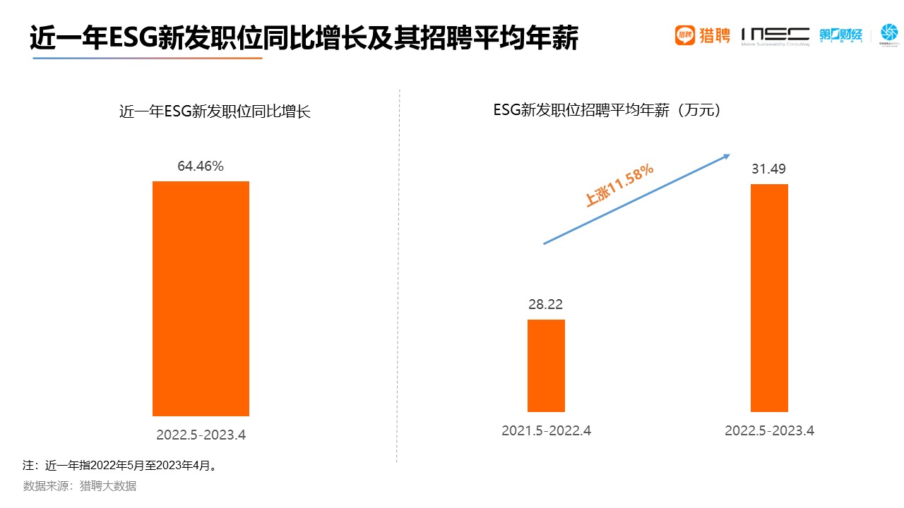 再看涨幅,翰德(Hudson)发布的《2023年度翰德人才趋势报告》显示,2023年领跑薪水涨幅榜岗位的榜首即为金融ESG领域,平均涨幅逾50%,比嵌入式开发、新能源汽车研发、芯片等热门赛道还要高。