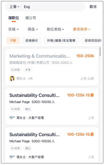 与所有的高薪职位一样,15万元月薪在ESG相关岗位中也算是凤毛麟角。