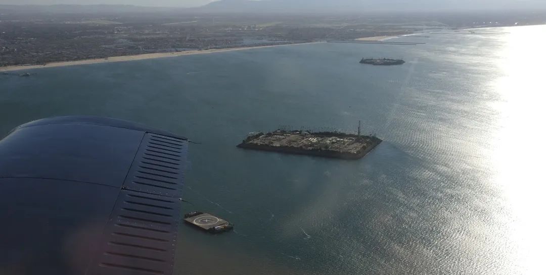从长滩国际机场旁的一个小机场起飞,不到五分钟,就来到圣佩德罗湾上空,侧目向下看,我刚刚飞过了 SpaceX 那艘印着“Of course I still love you”的回收船。