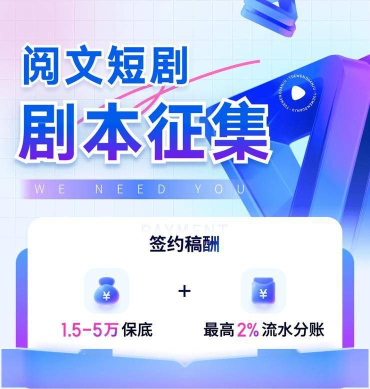10月31日,腾讯旗下的上市公司阅文集团已经正在对外发布“剧本征集令”,正式进军短剧业。平台承诺为作者带来1.5万-5万保底稿酬,外加最高2%的流水分账。