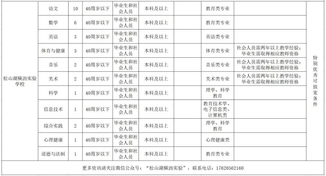 2019-2020学年,还需新招聘2名临聘教师: