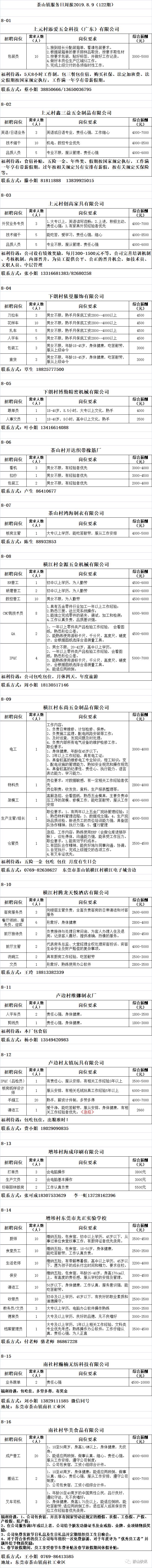 茶山最新一波招聘信息出炉!