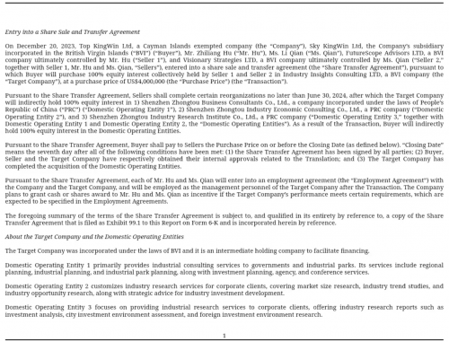 北京时间2023年12月21日,纳斯达克上市公司、被誉为“资本赋能第一股”的天成金汇(TCJH)发布公告称,将以400万美元的总对价全资收购深圳中投顾问旗下中投商业顾问、中投产业经济咨询、中投产业研究院等三家公司100%股份。本次交易完成后,三家公司将继续保持独立运营,天成金汇将为中投顾问提供全面的支持,为客户提供更好的服务。