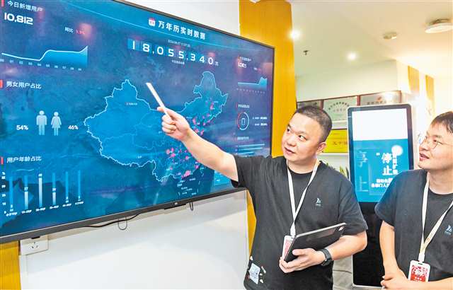 六月二十七日,优路科技工作人员在后台关注万年历App的实时用户数据。记者 张锦辉 摄\视觉重庆