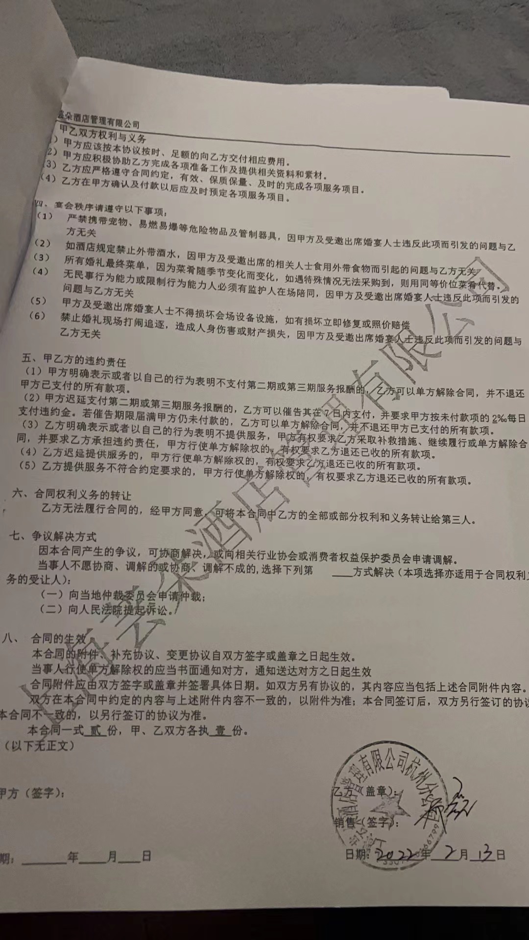褚女士的婚礼宴会协议书 来源:受访者提供