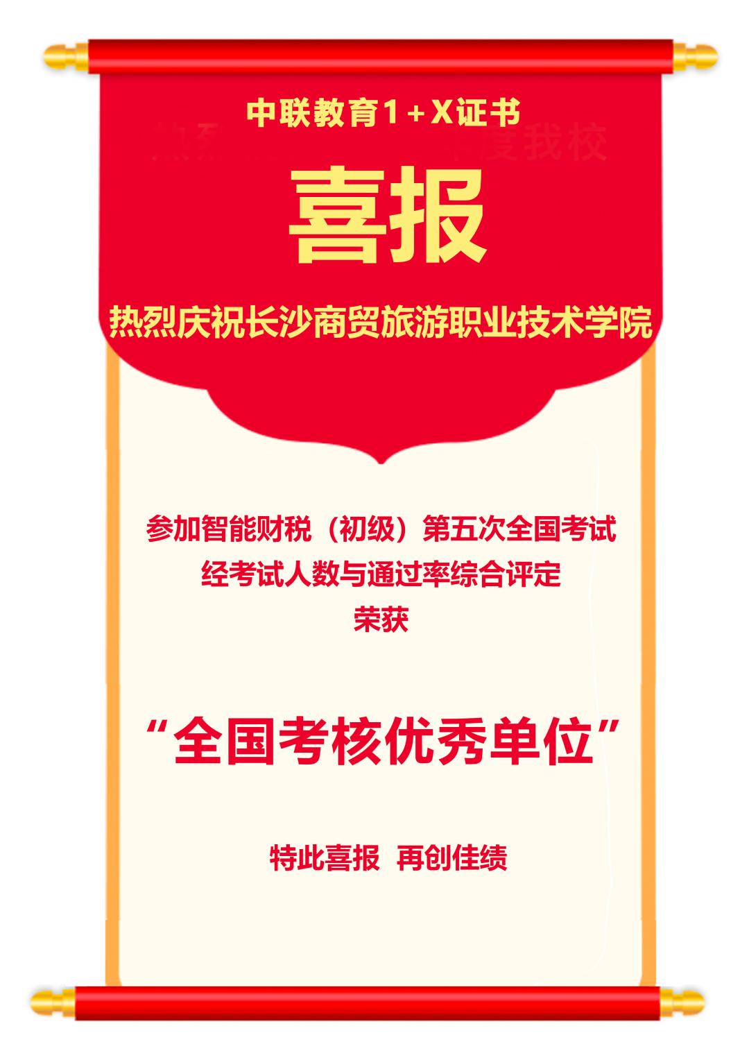 我校参加1+X智能财税(初级)职业技能等级证书全国第五次考试,经过考试人数与通过率综合评定,荣获中联教育1+X证书“全国考核优秀单位”!