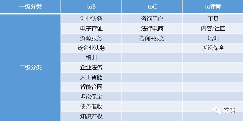 这些论断都有道理,但也不全对,因为互联网法律它不只是一个类而是一个筐,筐内各个方向各种产品之间的差别很大。按我个人理解,互联网法律可以分为to律师、toC、toB三个大类18个小类。本人先后9年,经历过互联网法律创业的to律师、toC、toB三个大方向,也做过一点小成绩,深感这个行业的落后与闭塞,故就此整理这近十年间我的一些思考,供各位同行者参考。