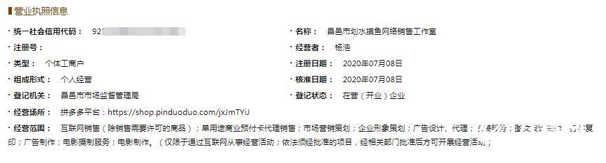 潍坊昌邑市一家成立于2020年7月8日的网络销售工作室,甚至以“划水摸鱼”为名称。经营范围为互联网销售(除销售需要许可的商品);单用途商业预付卡代理销售;市场营销策划;企业形象策划;广告设计、代理;包装服务;图文设计制作;打字复印;广告制作;电影摄制服务;电影制作。(仅限于通过互联网从事经营活动;依法须经批准的项目,经相关部门批准后方可开展经营活动)