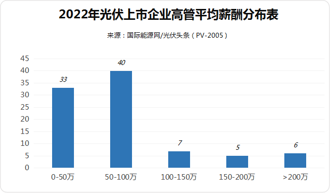 据国际能源网/光伏头条(PV-2005)统计,2022年,上市企业高管平均薪酬在50-100万之间占绝对多数。