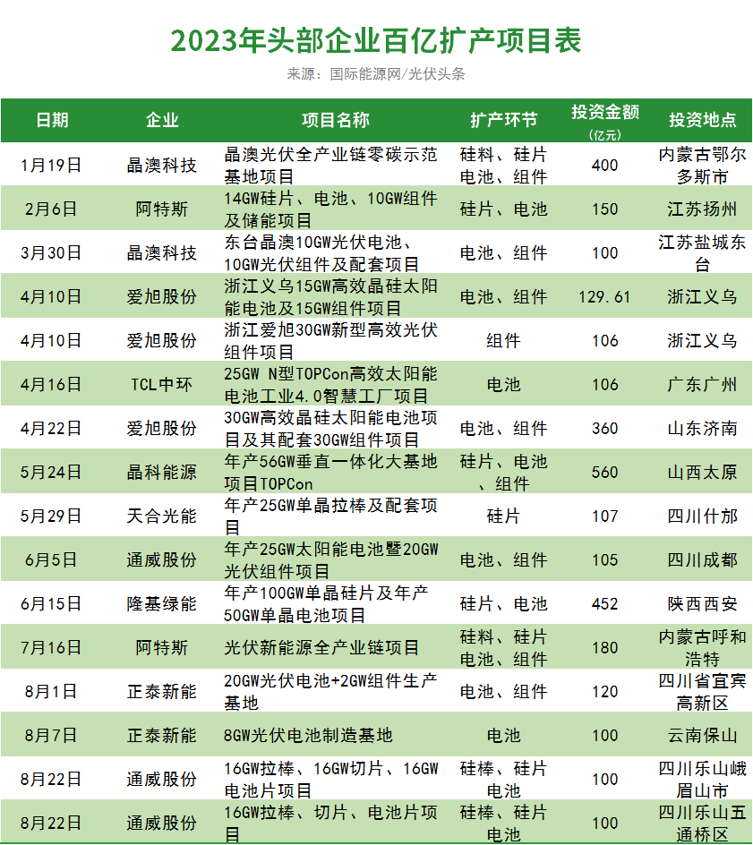 国际能源网/光伏头条(PV-2005)长期关注光伏行业制造业的投扩产情况。据统计,今年以来,几乎每月都有上千亿元的投资协议签订。包括行业内的龙头企业、行业外的明星企业,新崛起的行业企业都在纷纷扩大产能。光伏内卷的这种程度,资金的重要性不言而喻。对于上市企业而言,可以通过增发、可转债等多种方式进行融资。