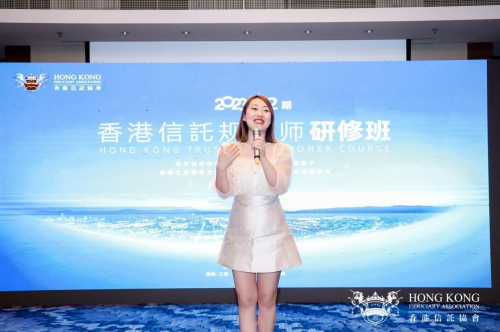 研修班二期学员代表上台发表感言,学员代表真诚说到:“首先感谢老师们和研修班工作人员这两天辛勤的付出和周到细致的安排。更感谢香港信託协会所打造的这一学交流平台。在香港信託规划师研修班,我们不仅学到了专业知识,还收获了珍贵的友谊和人脉资源。我们将带着这份财富回到各自的工作岗位上,学以致用,促进个人发展和事业提升。”