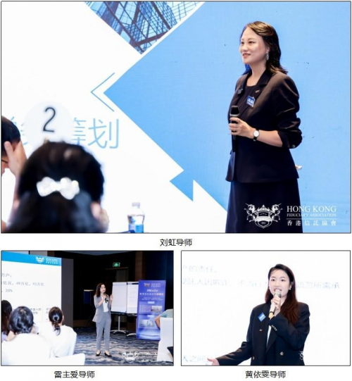 在结束白天的紧张学之后,协会特别为学员举办专业分享会,分享会由香港信託协会会长陈昊君、香港信託协会营运总监陈志豪、香港信託协会大中华区会长张希刚、香港信託协会高级信託经理辜思成带来,几位香港信託专家分别为学员们详尽分享了香港信託发展机会,平台资源及渠道合作的丰厚政策,并特设问答环节,与学员们进行亲切互动。