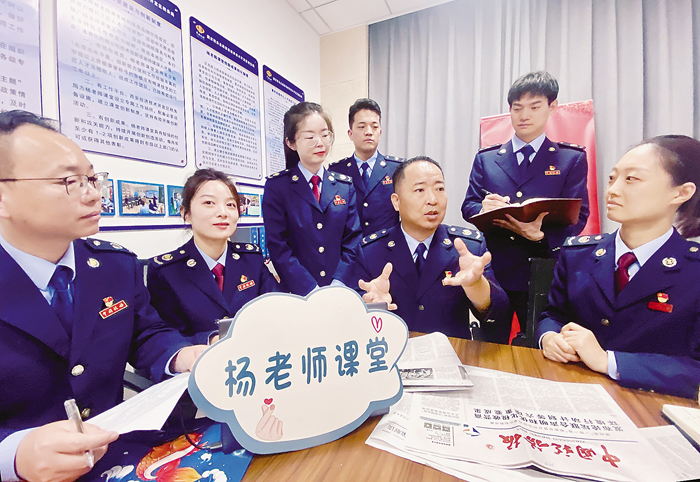 西安市税务局政策辅导团队“杨老师课堂”的成员在研读报纸