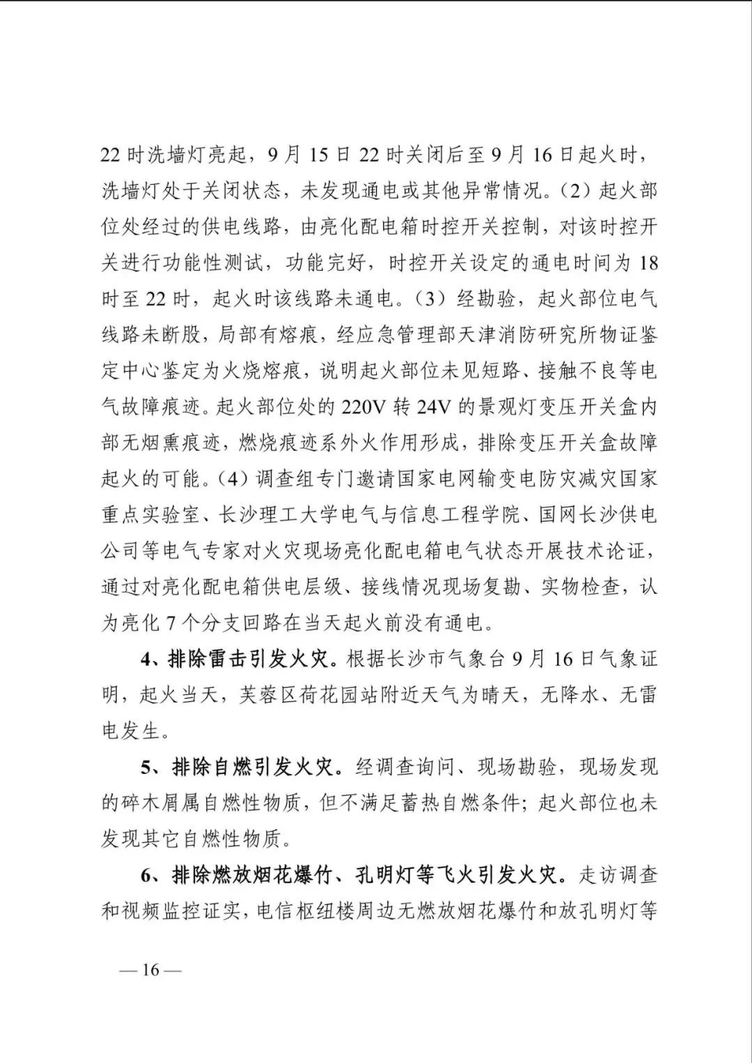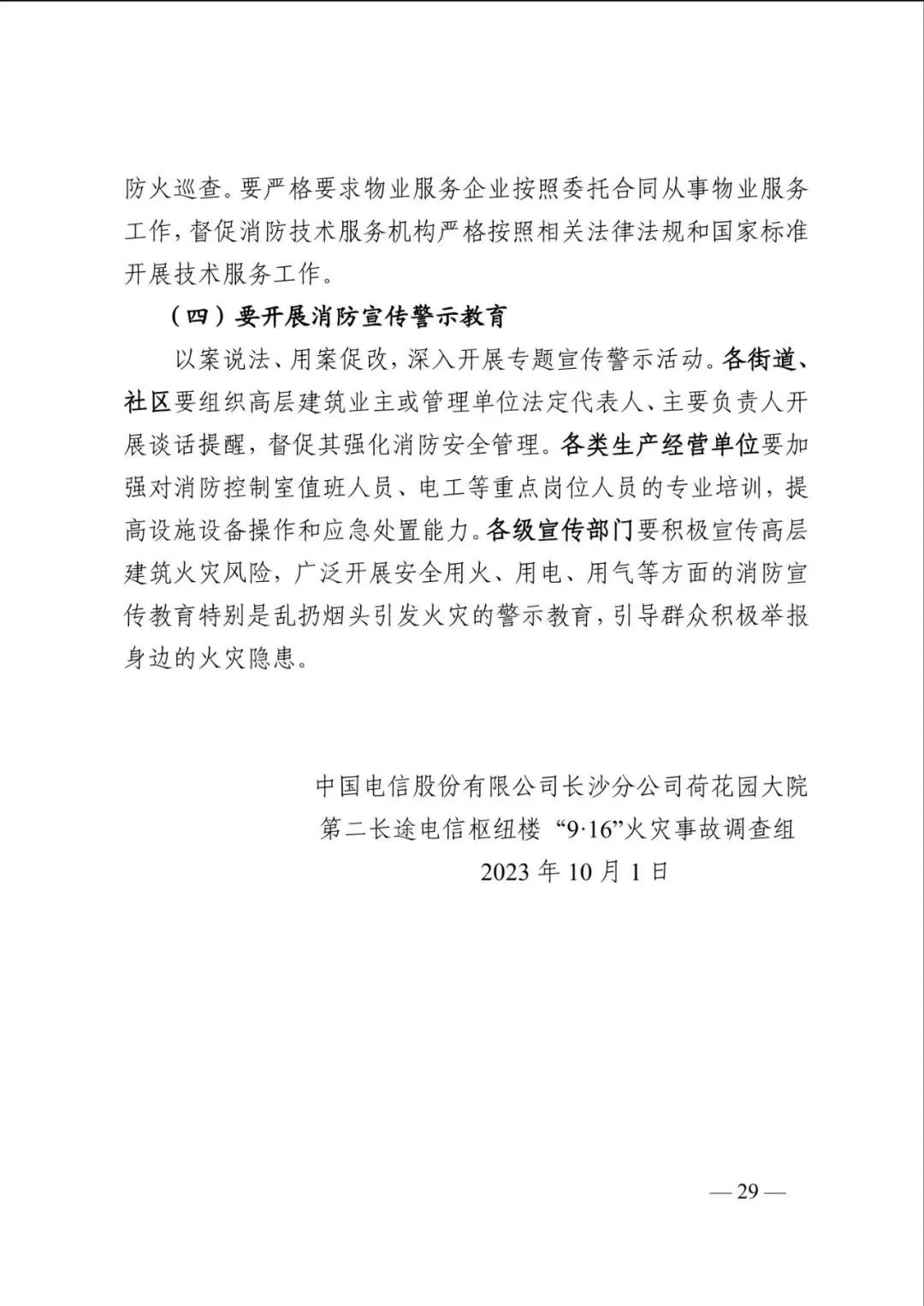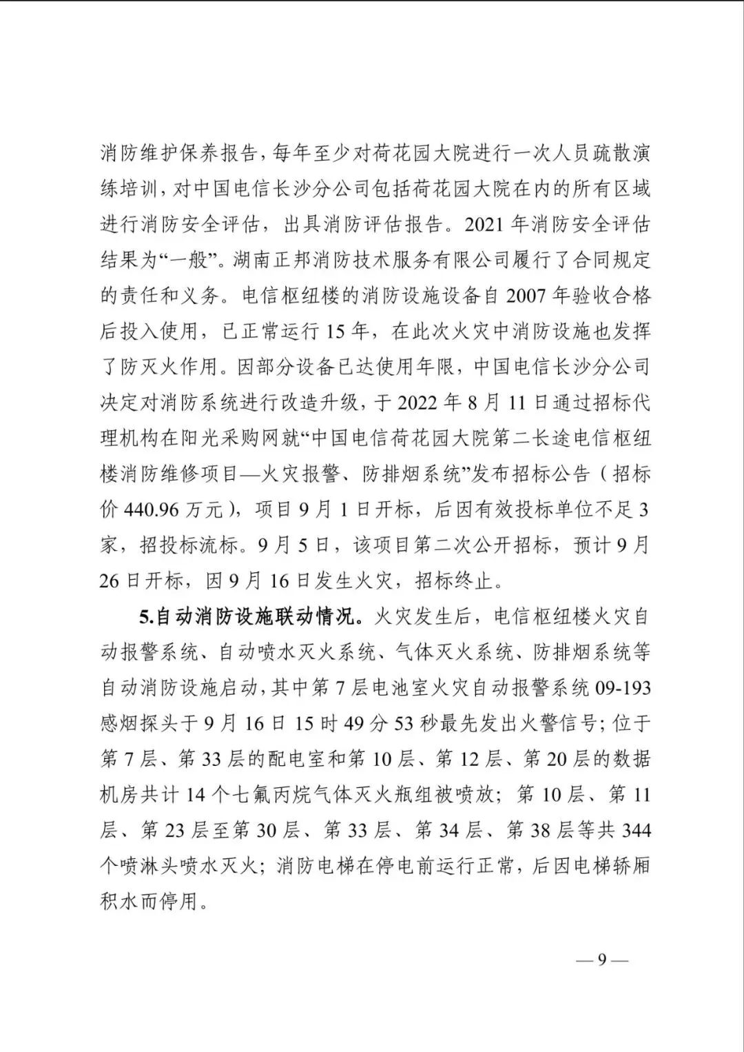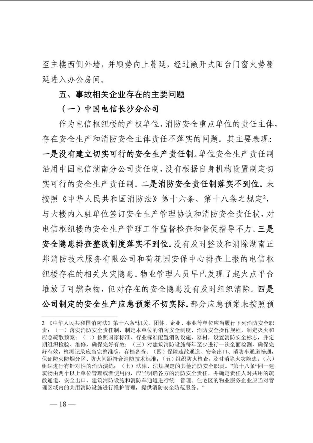 近日,湖南省长沙市应急管理局公布了《中国电信股份有限公司长沙分公司荷花园大院第二长途电信枢纽楼“9·16”火灾事故调查报告》。