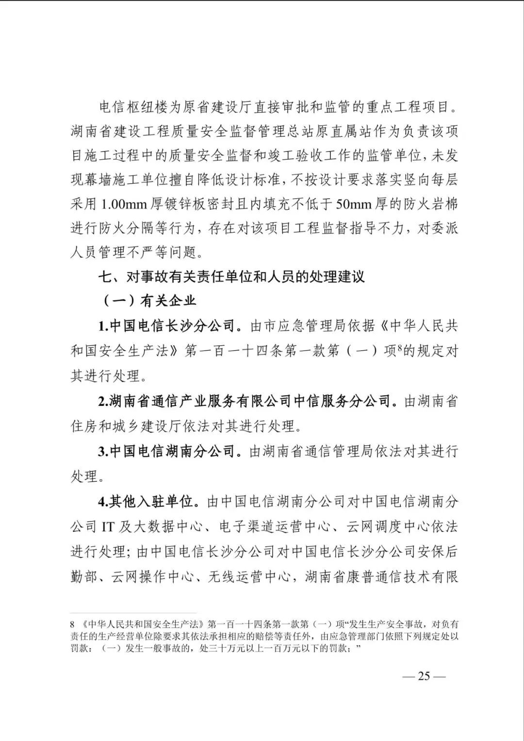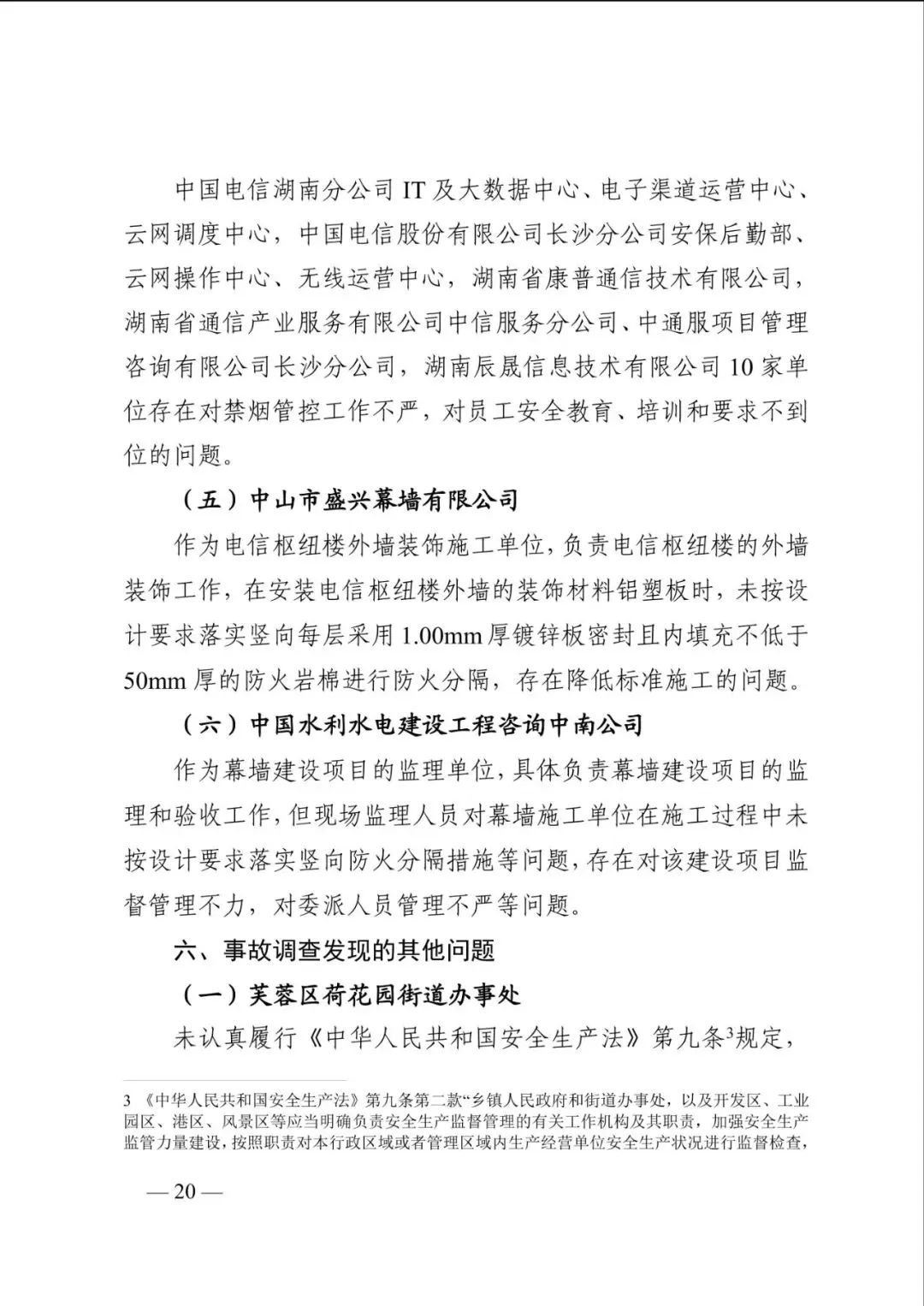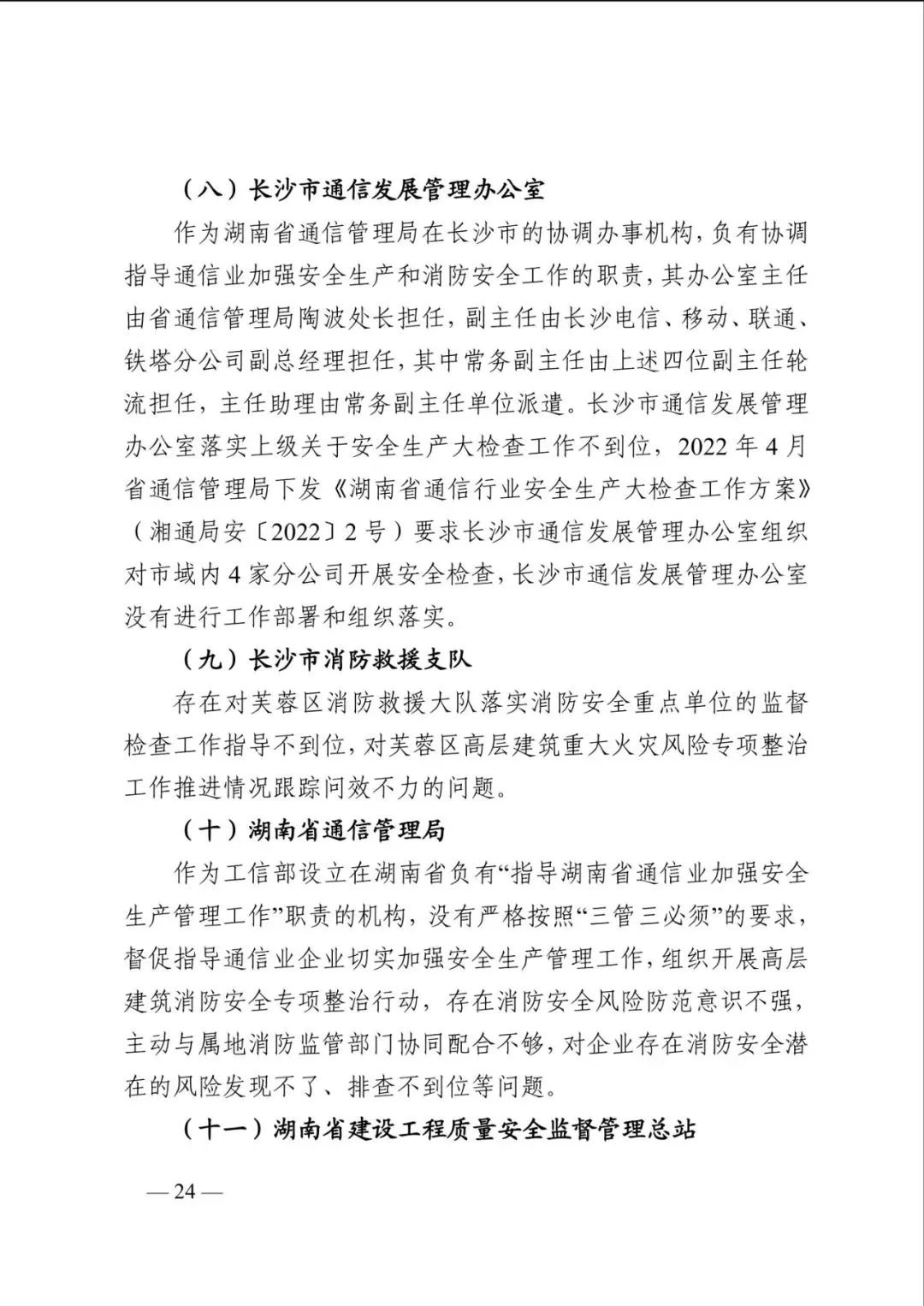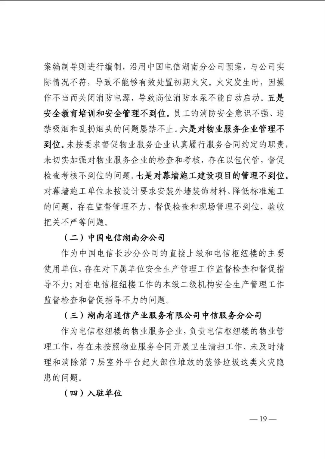 近日,湖南省长沙市应急管理局公布了《中国电信股份有限公司长沙分公司荷花园大院第二长途电信枢纽楼“9·16”火灾事故调查报告》。