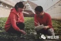 工作人员在记录草莓生长情况(2014年)刘建提供