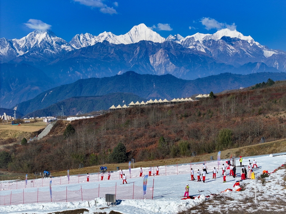 天气好时,王岗坪滑雪场可观贡嘎山及周围群山。黄刚 摄