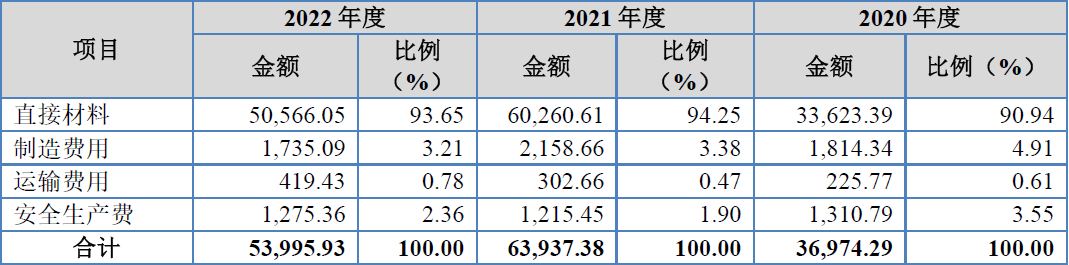 从上表可见,发行人主营业务成本中按生产企业成本核算要素,归类了直接材料、制造费用甚至运输费用及安全生产费,唯独没有列示直接人工成本。