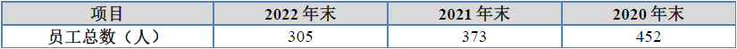 从上表可见,发行人报告期内经历了员工人数从第一年末的452人下降至期末的305人,下降147人,下降比例约为32.52%,而发行人的营业收入如上文所示,报告期内分别为4.44亿元、7.62亿元、6.72亿元,与发行人持续下降的员工人数变动特征并不相符。