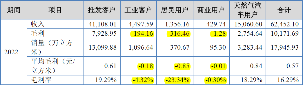 从上表可见,发行人2022年度工业客户、居民用户以及商业用户业务均为亏损,这三类客户我们可以理解为发行人的直接客户。但发行人上表中占比最高的批发客户,相当于发行人下级分销商,发行人反而是盈利的。