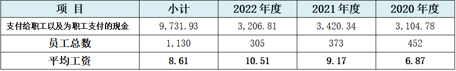 与发行人缺少直接人工成本支出相对应的是,发行人的人均工资也显示过高异常,通过现金流量表端的数据,估值之家计算出发行人经计算的人均平均工资如下表所示: