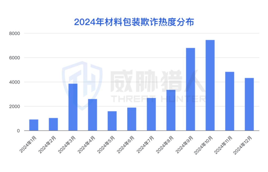 (1)2024年材料包装欺诈热度呈上升趋势,下半年热度比上半年增加148%