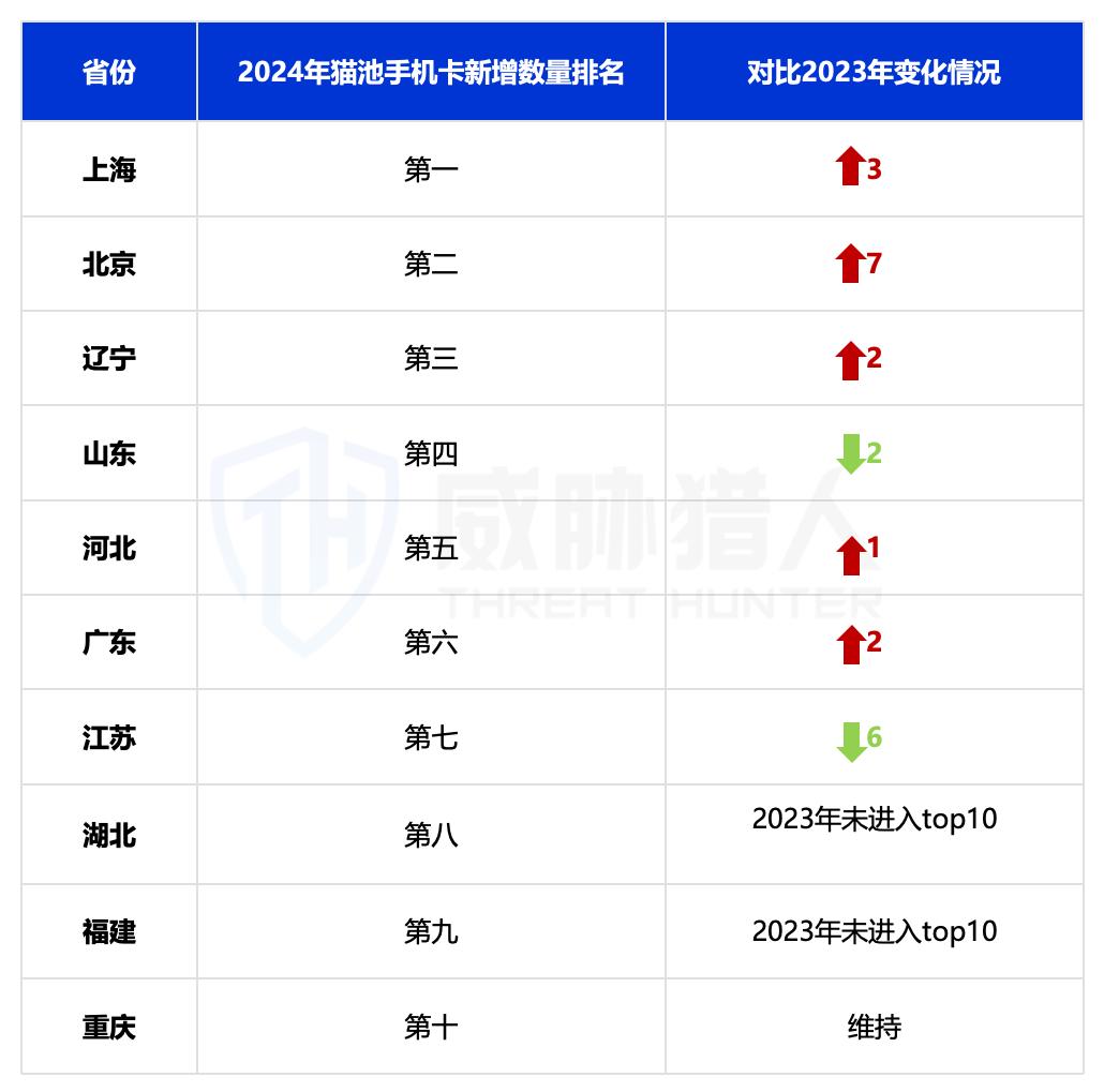 (2)2024年国内新增猫池卡归属省份TOP3:上海、北京、辽宁