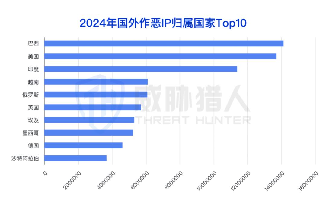(2)2024年国外作恶IP归属国家TOP3:巴西、美国、印度
