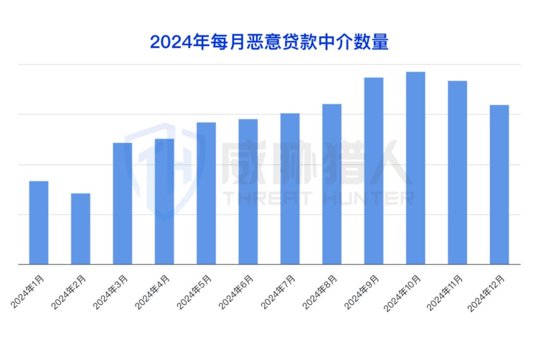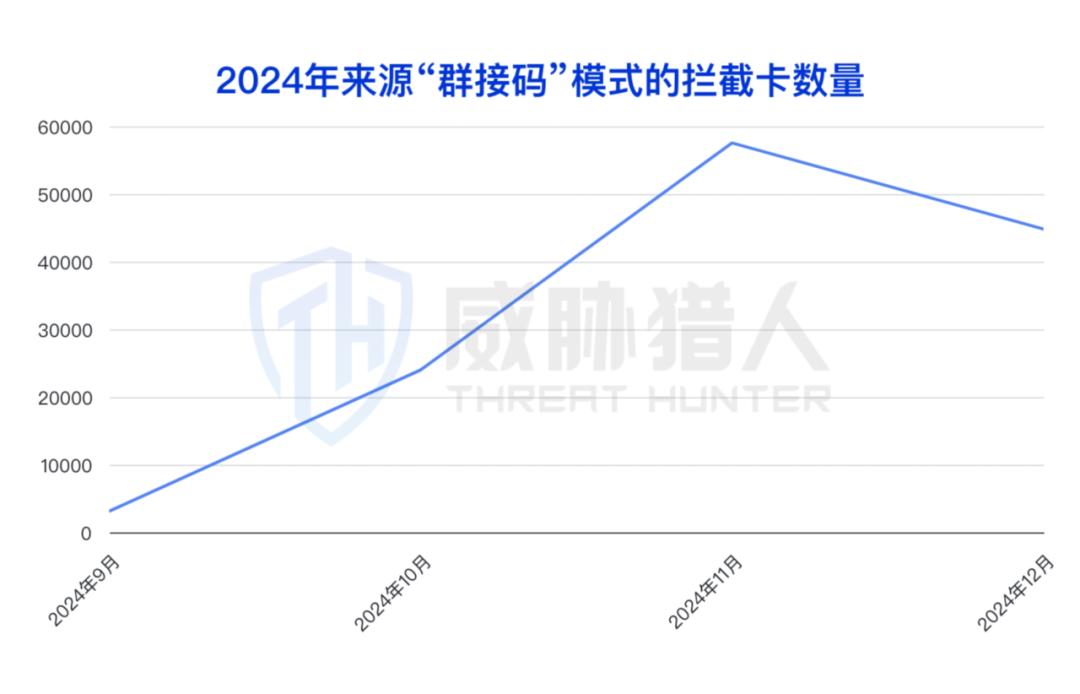 威胁猎人研究发现,一月份拦截卡数量大幅提升是因为去年年底新出现的一个拦截卡渠道,投放了大量拦截卡资源,2024年该渠道贡献拦截卡数量近百万余例,占今年整体数量的48.82%。但该渠道在2024年6月到7月期间暂停活跃,最终在2024年12月停止运营。