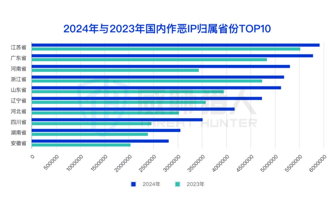 (2)2024年国内作恶IP归属省份TOP3:江苏、广东、河南