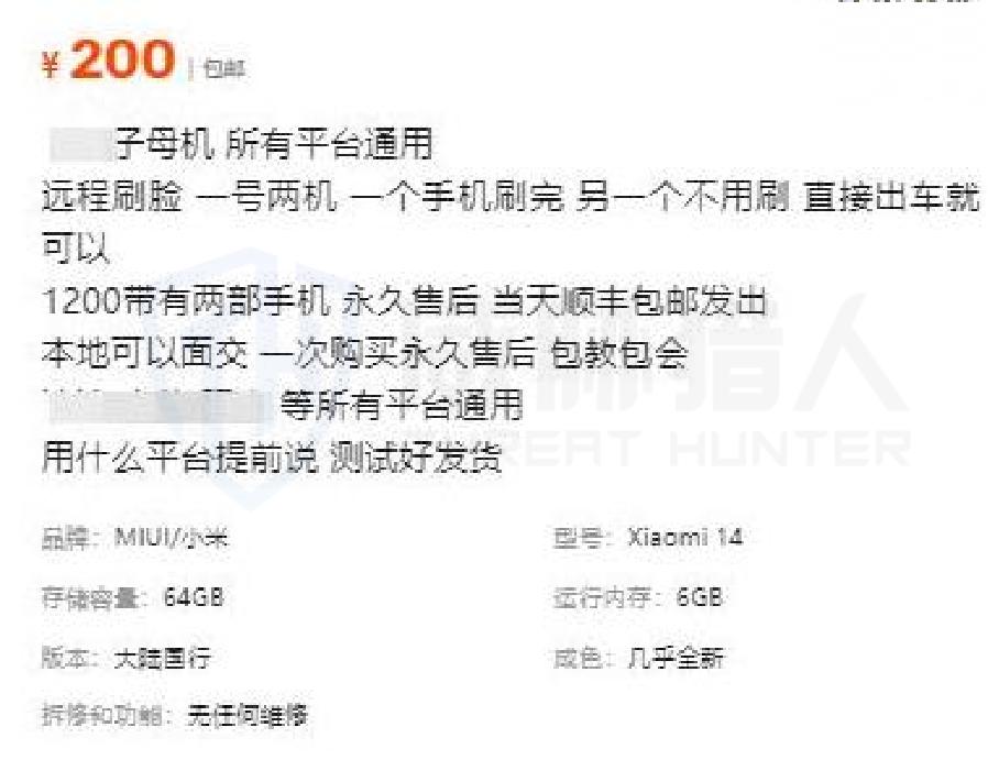 在攻击技术方面,2024年黑产团伙对通用技术的应用也有新的发展,如滥用“子母机”绕过身份认证、利用“NFC远程传输软件”进行境外洗钱、定制化云手机系统提升攻击效率等等。