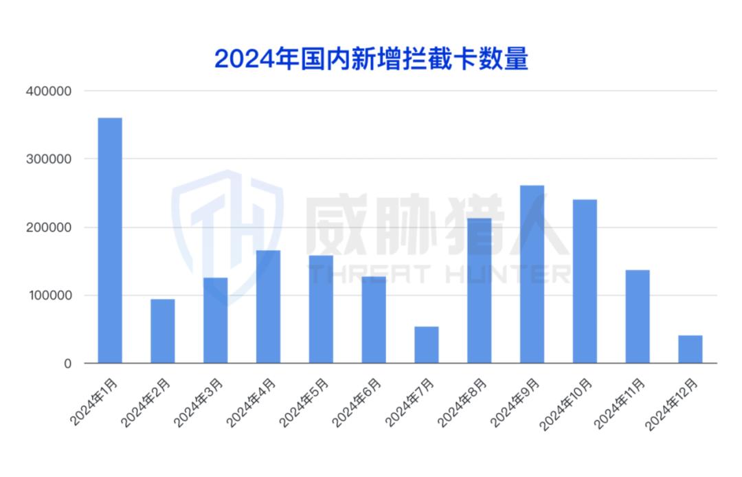(1)2024年国内新增拦截卡196万例,较2023年增长405.50%