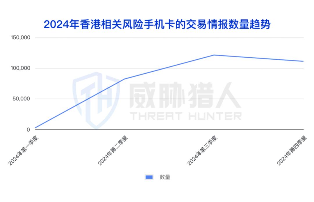 值得关注的是,威胁猎人情报数据显示,自2024年3月起,归属地为中国香港的风险手机卡交易数量大幅增长,9月份达到峰值。